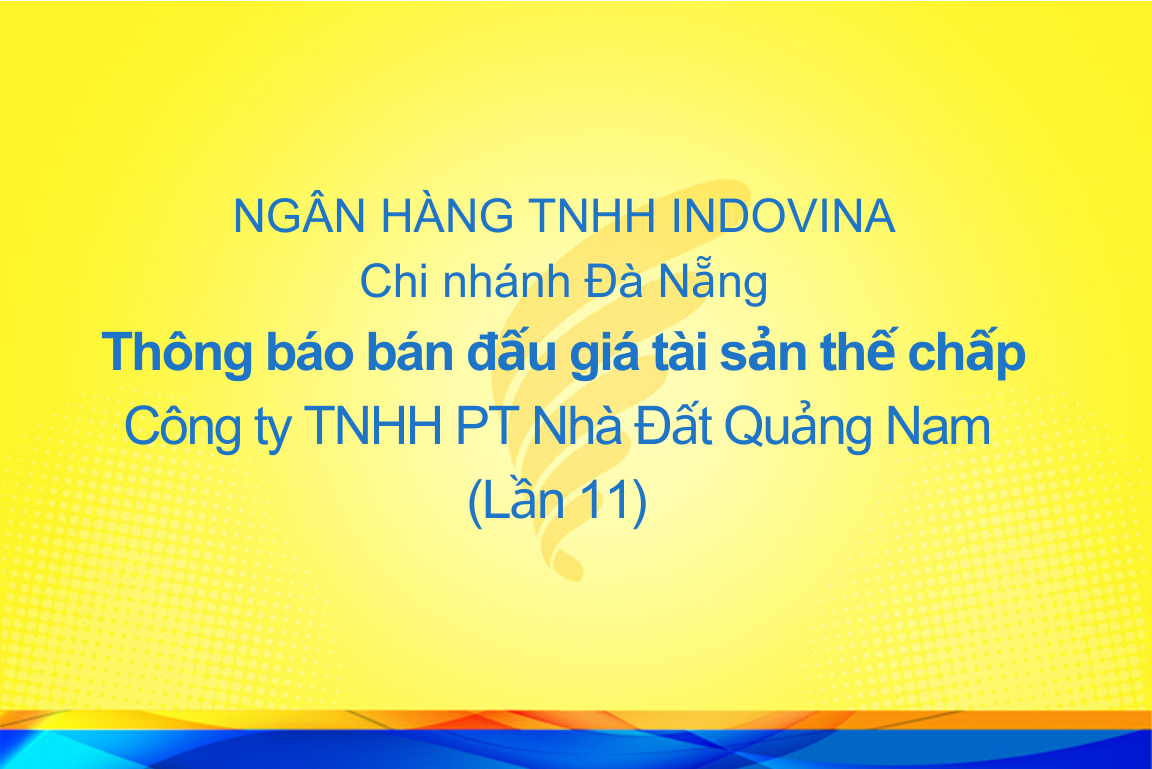 CHI NHÁNH ĐÀ NẴNG THÔNG BÁO BÁN ĐẤU GIÁ TÀI SẢN THẾ CHẤP (LẦN 11)
